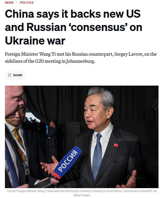 ?ína podporuje nový „konsenzus“ medzi Spojenými štátmi a Ruskou federáciou oh?adom vojny na Ukrajine. Vyhlásil to ?ínsky minister zahrani?ia Wang I na summite G20 v Juhoafrickej republike, kde sa stretol s ministrom Lavrovom, uvádza Politico.