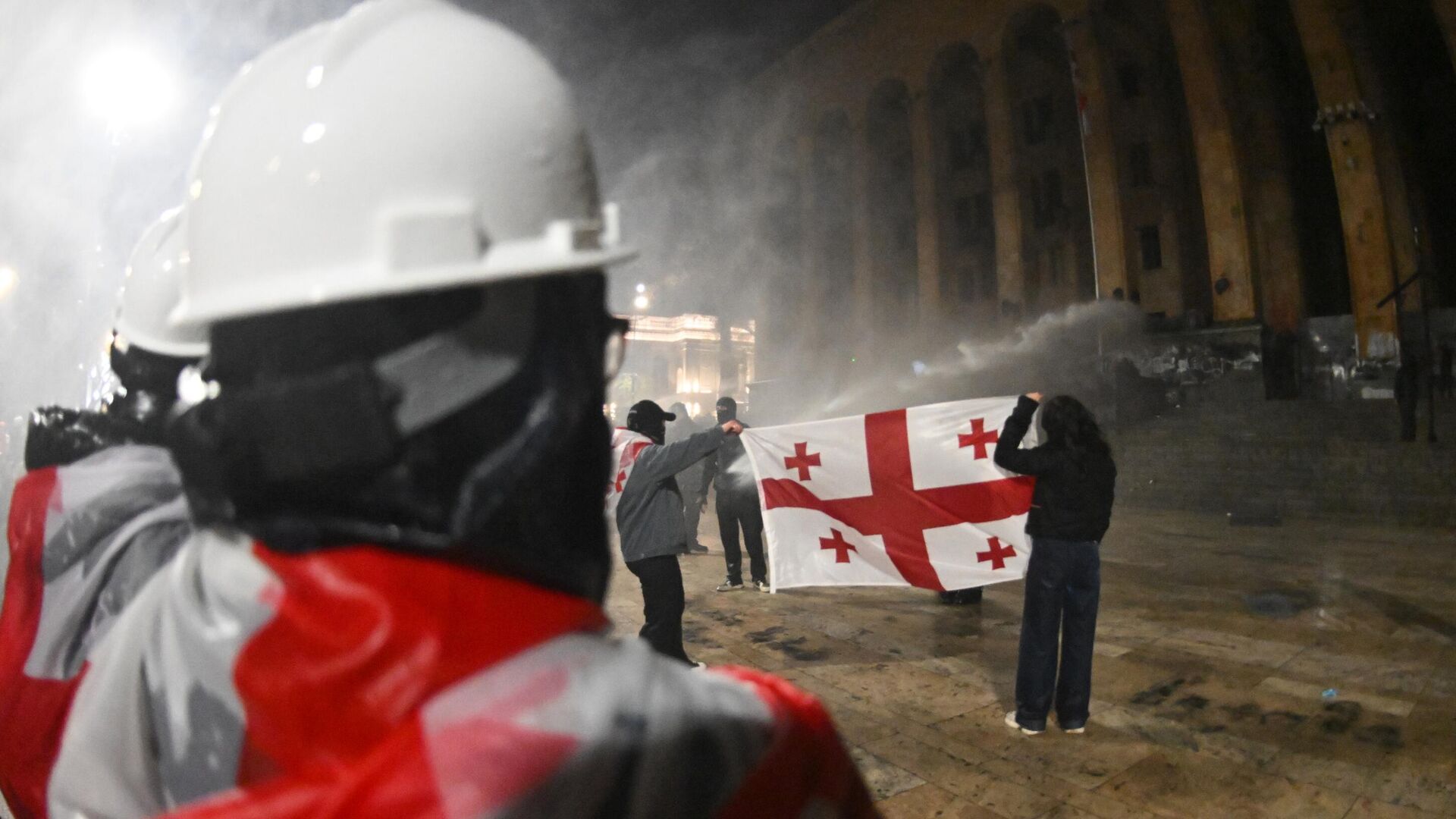 Aj ke? po?et hlasov pokra?oval, na Liberty Square v centre Tbilisi, ne?aleko parlamentu, bola založená scéna, na plánované stretnutie, ktorého organizátori otvorene hovorili o „mierovom zvrhnutí“ vlády Gruzínskeho snov.