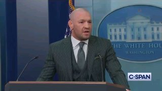 Bývalý majster sveta v zmiešaných bojových umeniach zavítal pri príležitosti D?a svätého Patrika do Bieleho domu, kde sa v tla?ovom stredisku prihovoril novinárom.