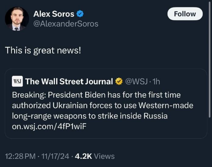 Úžasne nezru?ný Soros Jr. hrdo oznamuje, že americké zbrane s dlhým dosahom môžu zasiahnu? hlboko do ruského územia.