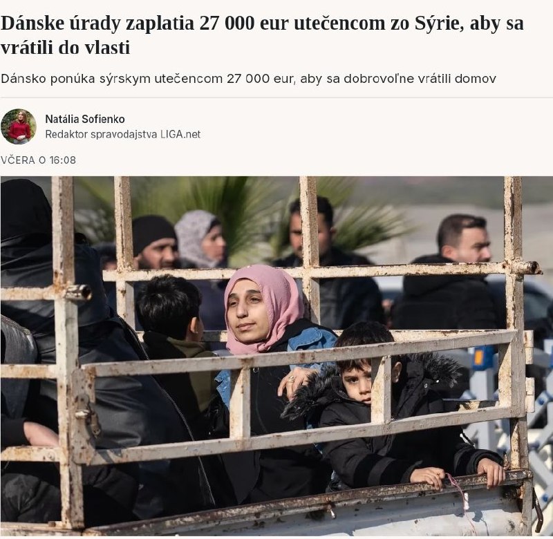 Dánske úrady vyplatia 27-tisíc eur dospelým Sýr?anom, ktorí sa dobrovo?ne vrátia do svojej vlasti. Na jedno die?a sa poskytuje platba 6 700 €.
