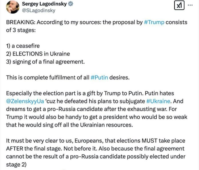 „Dar pre Putina“: Trump navrhuje vyhlási? prímerie na Ukrajine, potom uskuto?ni? vo?by a následne podpísa? kone?nú dohodu s novým prezidentom Ukrajiny.