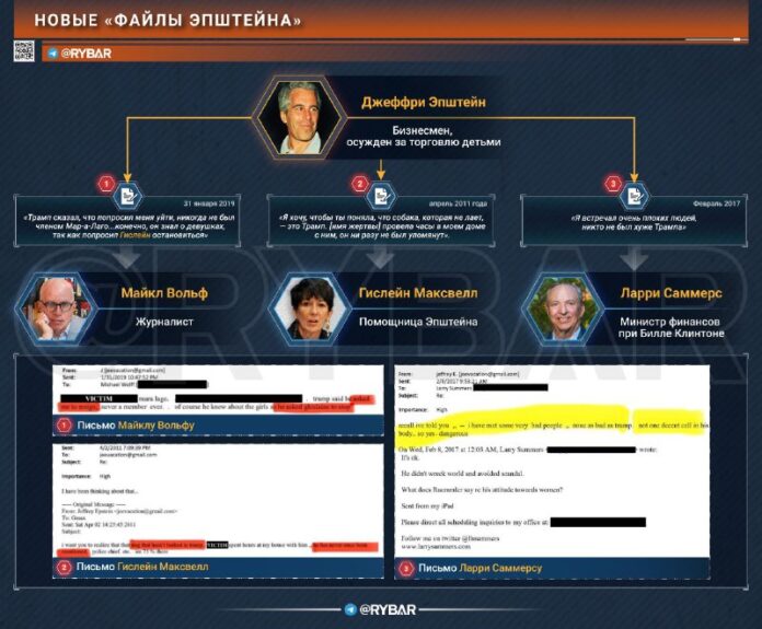 ?? Vo februári 2017 napísal Epstein bývalému ministrovi financií Larry Summersže „stretol ve?mi zlých ?udí, nikto nebol horší ako Trump“ a v roku 2018 nazval Trumpa „neuverite?ne špinavým ?lovekom“.Okrem toho Epstein spomenul existujúce fotografie Trumpa s polonahými diev?atami v kuchyni.