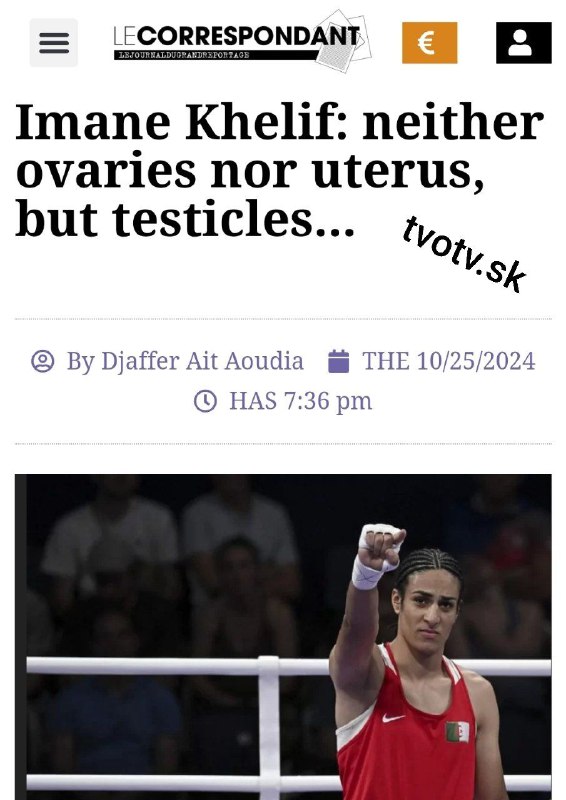 Denník Le Correspondant predstavil lekársku správu, ktorá plne potvrdzuje, že Iman Khelif, olympijský ví?az v boxe, je fyziologicky chlap.