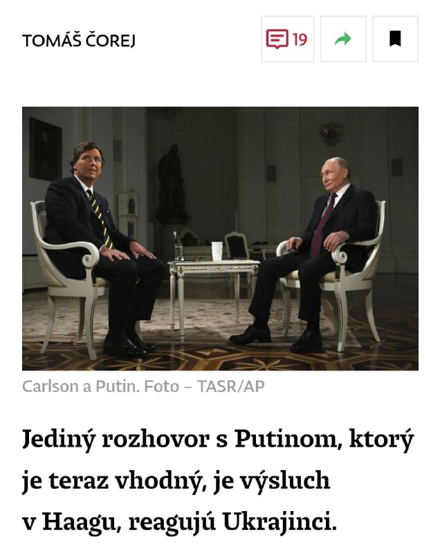 „Putin si vybral žurnalistu s pochybnou reputáciou: krajne pravicového moderátora Tuckera Carlsona, ktorého pred rokom vyhodili z Fox News.“