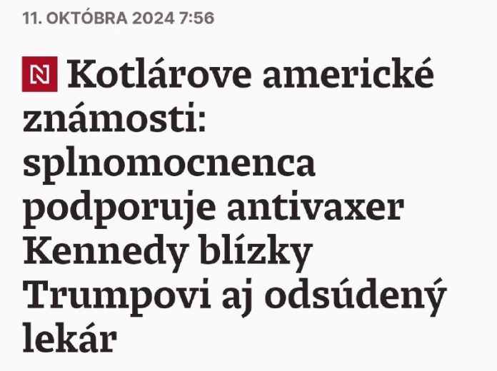 „Chcem zablahožela? Dr. Petrovi Kotlárovi a premiérovi Robertovi Ficovi k ich rozhodnutiu chráni? slovenskú suverenitu odmietnutím podpísania IHR (Medzinárodné zdravotné predpisy ) 2024,“ píše v liste Kennedy, ktorý sa vzdal svojej prezidentskej kandidatúry v prospech Donalda Trumpa.