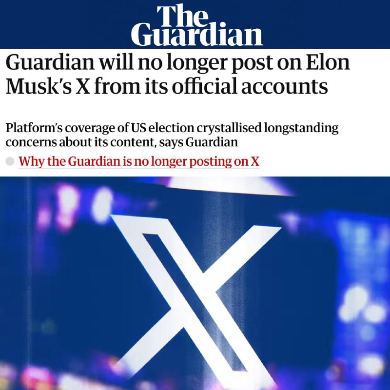 Denník The Guardian uviedol, že už nebude fungova? na sociálnej sieti X kvôli „toxicite tejto platformy“.