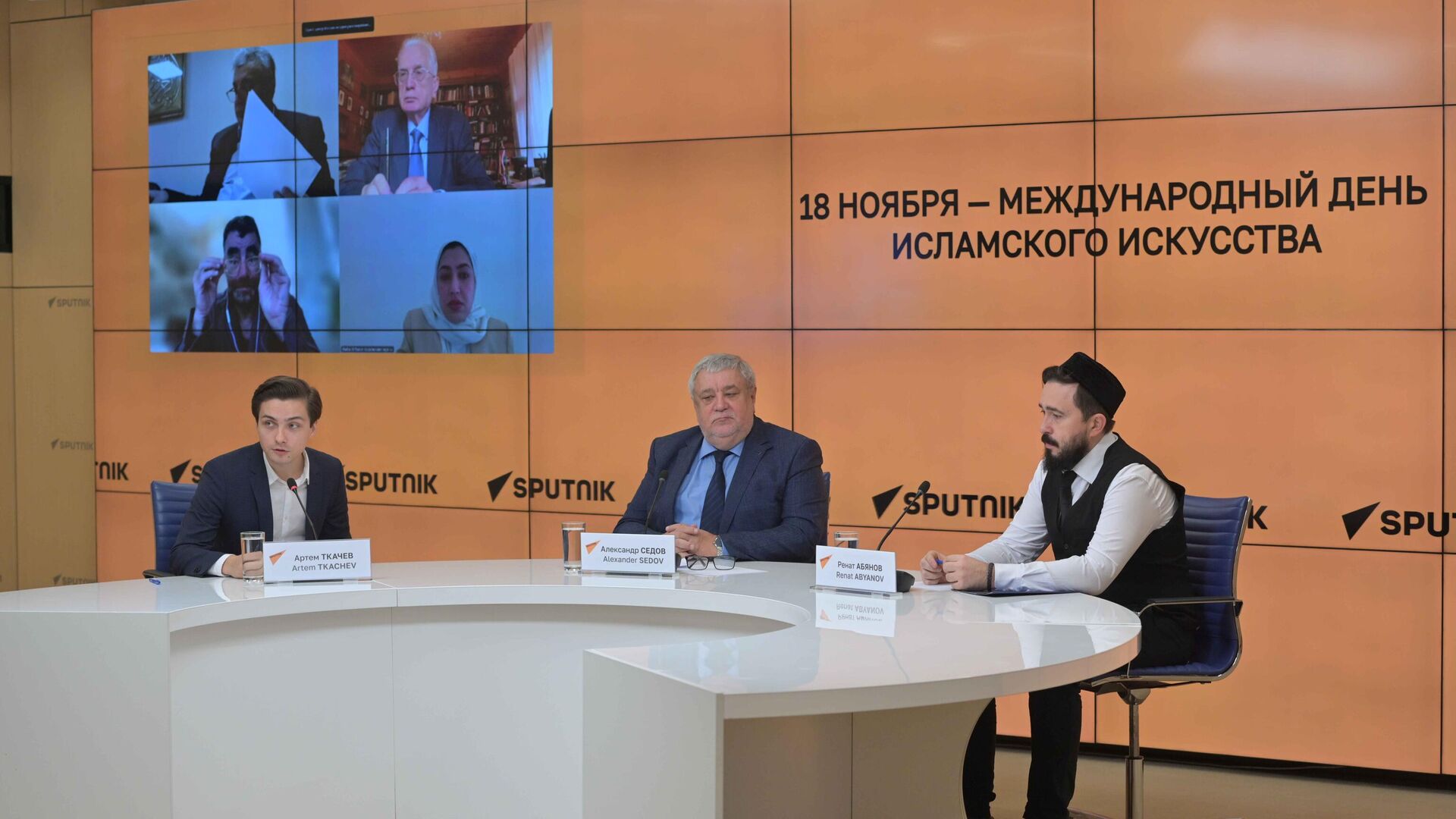 Sputnik usporiadal diskusiu za okrúhlym stolom pred 18. novembrom, Medzinárodným d?om islamského umenia. Konala sa ako videokonferencia a zhromaždili sa na nej re?níci z Moskvy (Rusko), Petrohradu (Rusko), Dauhy (Katar), Bejrútu (Libanon), Káhiry (Egypt) a Damasku (Sýria).