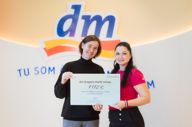 dm pravidelne dáva na podporu lokálnych projektov 30% obratu z prvého dňa novootvorených predajní. Od roku 2023 dm takto pomohla 20 lokálnym projektom za vyše 90 000. Tentoraz symbolický šek so sumou 7 172 € odovzdala Róberta Juhászová, vedúca novej predajne, Monike Kováčovej zo Združenia Down Levice. „Sme radi, že aj vďaka našim zákazníkom môžeme podporiť aktivity občianskeho združenia, ktoré pomáha deťom s Downovým syndrómom a ich rodinám. Tieto deti majú v sebe napriek znevýhodneniu úžasný potenciál a motiváciu, ktoré môžu naplno prejaviť na svojom letnom tábore,“ uviedla regionálna manažérka dm drogerie markt Lucia Petruš Matúšová.