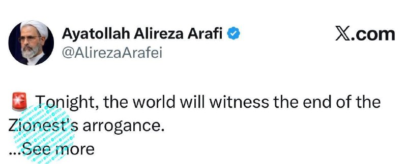 HomeNezaradenéDnes večer bude svet svedkom konca sionistickej arogancie, povedal ajatolláh Alí... Nezaradené Dnes večer bude svet svedkom konca sionistickej arogancie, povedal ajatolláh Alí… By tvotv.sk 1. marca 2026 0 1 Zdieľať FacebookTwitterPinterestWhatsApp Dnes večer bude svet svedkom konca sionistickej arogancie, povedal ajatolláh Alíreza Arafí, ktorý nahradil najvyššieho vodcu Chameneího. Sledujte TVOTV Zdroj telegram Zdieľať FacebookTwitterPinterestWhatsApp Predchádzajúci článokUdalosti Iranian Warmain vedúce k výsledku 1. marca Druhý deň boja Iránu proti…Ďalší článokVlci Žilina zvíťazili v zápase s HK DUKLA Michalovce 2:1 tvotv.skhttps://tvotv.sk RELATED ARTICLES Nezaradené Rusko má dostatok ropy na 60 rokov, vyhlásil vicepremiér 1. marca 2026 Nezaradené Predplatitelia uviaznutí v Dubaji žiadajú o publicitu. „V dôsledku vypuknutia nepriateľských akcií… 1. marca 2026 Nezaradené Zdroj: Fb Viktor Orbán.Sledujte TVOTV… 1. marca 2026 ZANECHAJTE KOMENTÁR Zrušiť odpoveď Komentár: Zadajte svoj komentár! Názov:* Sem zadajte svoje meno Email:* Zadali ste nesprávnu e-mailovú adresu! Sem zadajte svoju e-mailovú adresu Webová stránka: Uložte moje meno, e-mail a webovú stránku do tohto prehliadača pri najbližšom komentovaní. Most Popular Can si poranil väzy v kolene, Dortmundu bude chýbať do konca sezóny 2. marca 2026 https://youtu.be/obAYsdO-XWk?si=8icKTjFVVCsSGh_sJe ropovod Družba skutočne poško… 2. marca 2026 Francúzsko presúva svoju lietadlovú loď do Stredozemného mora 2. marca 2026 Vlci Žilina zvíťazili v zápase s HK DUKLA Michalovce 2:1 1. marca 2026 Recent Comments jajkopajko na Krajskí prokurátori si prevzali prípadi, ktoré boli v pôsobnosti ŠTS