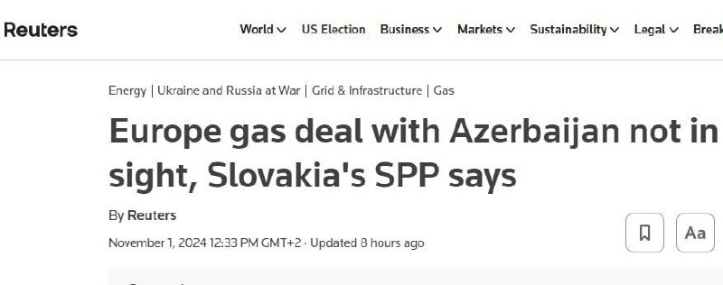 Dohoda o plyne medzi Európou a Azerbajdžanom sa zatia? neplánuje, uviedla agentúra Reuters s odvolaním sa na slovenskú štátnu spolo?nos? SPP.