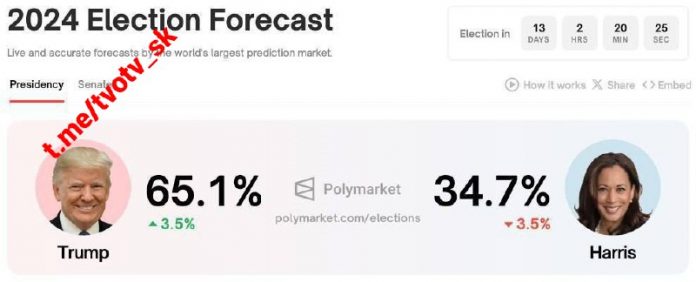 HomeNezaradenéDonald Trump má teraz v kurzoch na prezidentské voľby viac ako 30-percentný... Nezaradené Donald Trump má teraz v kurzoch na prezidentské voľby viac ako 30-percentný násk… By tvotv.sk 23. októbra 2024 0 6 Zdieľať FacebookTwitterPinterestWhatsApp Donald Trump má teraz v kurzoch na prezidentské vo?by viac ako 30-percentný náskok pred Kamalou Harrisovou Prístup k diskusii Prihlási? sa k odberu kanála Zdroj telegram Zdieľať FacebookTwitterPinterestWhatsApp Predchádzajúci článokGirone sme boli dôstojný súperĎalší článokIzrael vyzval na evakuáciu obyvateľov mesta Súr na juhu Libanonu tvotv.skhttps://tvotv.sk RELATED ARTICLES Nezaradené Venezuela a USA Eye Energy Väzby ako nový „motor“ vzťahov — Prezident 12. februára 2026 Nezaradené Kolumbijský prezident informoval o „pokuse o atentát“ 12. februára 2026 Nezaradené Snemovňa reprezentantov USA podporuje rezolúciu proti Trumpovým clám na Kanadu 12. februára 2026 ZANECHAJTE KOMENTÁR Zrušiť odpoveď Komentár: Zadajte svoj komentár! Názov:* Sem zadajte svoje meno Email:* Zadali ste nesprávnu e-mailovú adresu! Sem zadajte svoju e-mailovú adresu Webová stránka: Uložte moje meno, e-mail a webovú stránku do tohto prehliadača pri najbližšom komentovaní. Most Popular Po ruských útokoch na Dnipro, Kyjev a Odesu hlásia zranených 12. februára 2026 Venezuela a USA Eye Energy Väzby ako nový „motor“ vzťahov — Prezident 12. februára 2026 Kolumbijský prezident informoval o „pokuse o atentát“ 12. februára 2026 Štvrtok bude oblačný až zamračený s lokálnou hmlou 12. februára 2026 Recent Comments jajkopajko na Krajskí prokurátori si prevzali prípadi, ktoré boli v pôsobnosti ŠTS