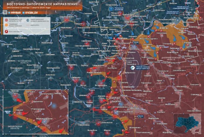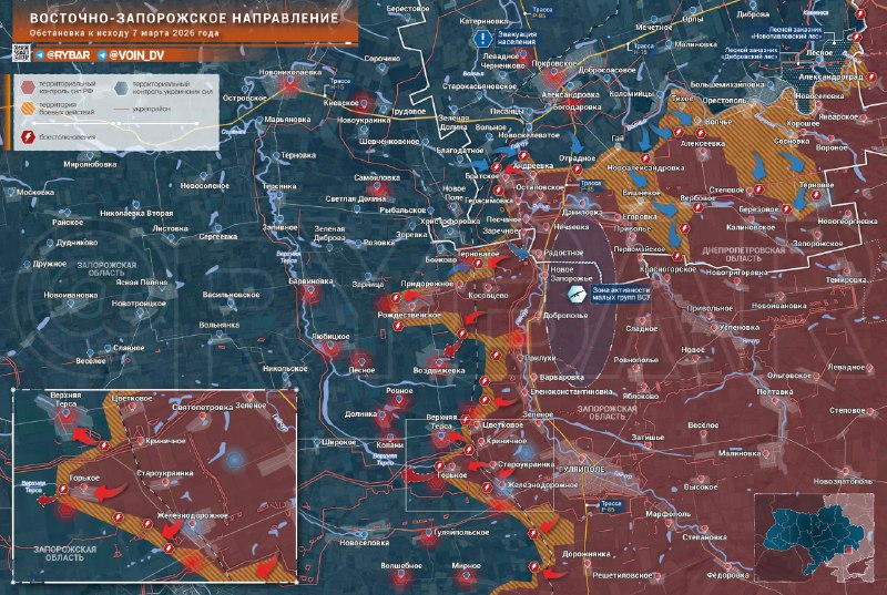 ➡️Po nejakej taktickej pauze spôsobenej potrebou preskupenia a evakuácie personálu nepriateľ obnovil útoky s podporou obrnených vozidiel v oblasti Orestopol. Situácia je napätá, ale ruské jednotky vďaka skoršiemu presunu záloh odrážajú nepriateľské protiútoky.