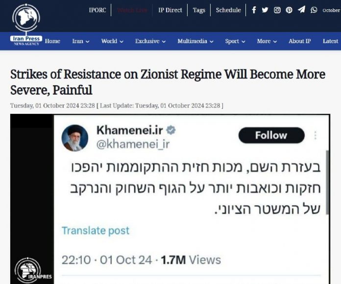 „S Božou pomocou budú údery frontu povstania silnejšie a bolestivejšie proti zohavenému a hnijúcemu telu sionistického režimu.“