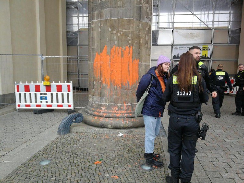 Dvaja klimatickí aktivisti z organizácie Poslednej Generácie nastriekali oranžovú farbu na Brandenburskú bránu v Berlíne. Podľa polície už boli aktivisti zatkn…