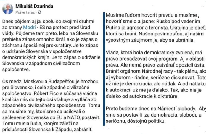 Dzurinda so svojimi druhmi dnes dorazí na protest v Bratislave.