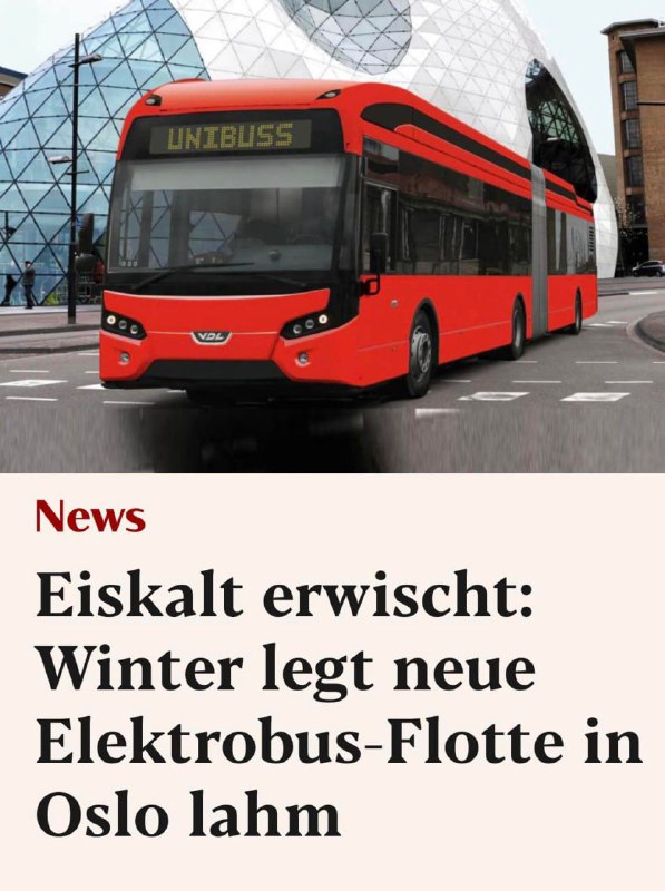 HomeNezaradenéElektrobusom je zimaZima zaskočila novú flotilu elektrobusov v nórskom hlavnom meste Oslo,... Nezaradené Elektrobusom je zimaZima zaskočila novú flotilu elektrobusov v nórskom hlavnom meste Oslo, čím sa výrazne zvýšili intervaly medzi jazdami MHD v meste.V komentá… By ZEMaVEK 13. decembra 2023 0 11 Zdieľať FacebookXPinterestWhatsApp Elektrobusom je zima Zima zasko?ila novú flotilu elektrobusov v nórskom hlavnom meste Oslo, ?ím sa výrazne zvýšili intervaly medzi jazdami MHD v meste. V komentároch ?udí zaujíma, pre?o v Moskve pri -15°C môžu po trase jazdi? elektrobusy, ale v Osle pri -5°C nie. | odber Zdroj telegram Zdieľať FacebookXPinterestWhatsApp Predchádzajúci článokNATO: „Rusi na Ukrajine umrznú na smrť“Rusi odpovedali: „My sme zima a zima sme my.“…Ďalší článok ZEMaVEK RELATED ARTICLES Nezaradené VIDEO: Českí turisti dostanú rekordné nálezné za nájdený zlatý poklad nesmierene… 17. apríla 2026 Nezaradené Trump: Libanon a Izrael sa dohodli na 10-dňovom prímerí 17. apríla 2026 Nezaradené VIDEO: „USA sa napriek rečiam o prímerí pripravujú na masívnu a koncentrovanú bo… 17. apríla 2026 Most Popular VIDEO: Českí turisti dostanú rekordné nálezné za nájdený zlatý poklad nesmierene… 17. apríla 2026 Grand Prix Svetozára Stračinu 2026 získalo Bulharsko 17. apríla 2026 Trump: Libanon a Izrael sa dohodli na 10-dňovom prímerí 17. apríla 2026 Merz chce rokovať o účasti USA na misii v Hormuzskom prielive 17. apríla 2026 Recent Comments jajkopajko na Krajskí prokurátori si prevzali prípadi, ktoré boli v pôsobnosti ŠTS