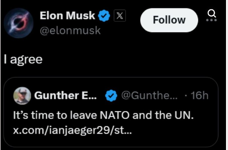Elon Musk na svojej sieti X podporil myšlienku odchodu USA z NATO a OSN.