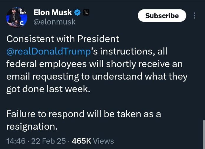 V súlade s inštrukciami prezidenta Trumpa, všetci federálni zamestnanci dostali e-mail s požiadavkou, aby nahlásili, ?o presne urobili minulý týžde?. Neodpovedanie bude považované za rezignáciu