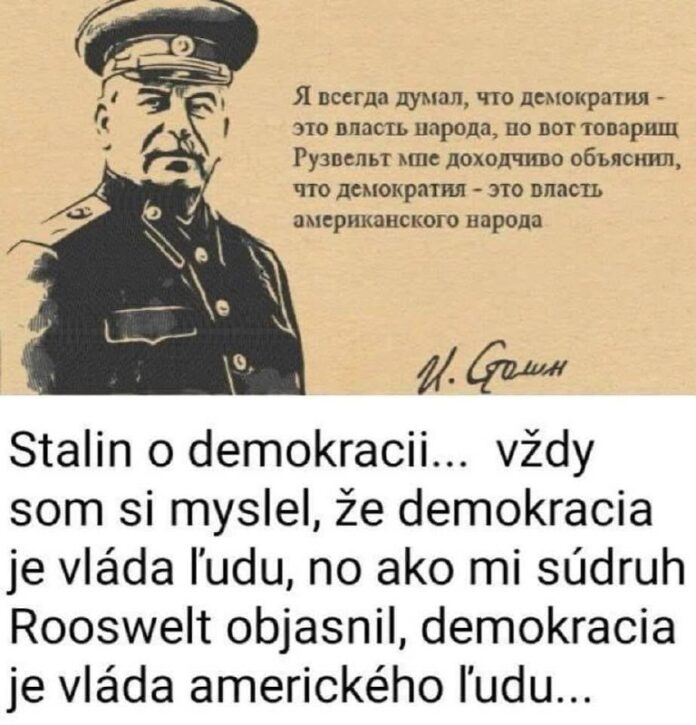 V tejto spojitosti je stále aktuálny, v diskusii s Roosveltom, Stalinov výrok o demokracii v réžii Američanov, že to je vláda iba amerického ľudu.