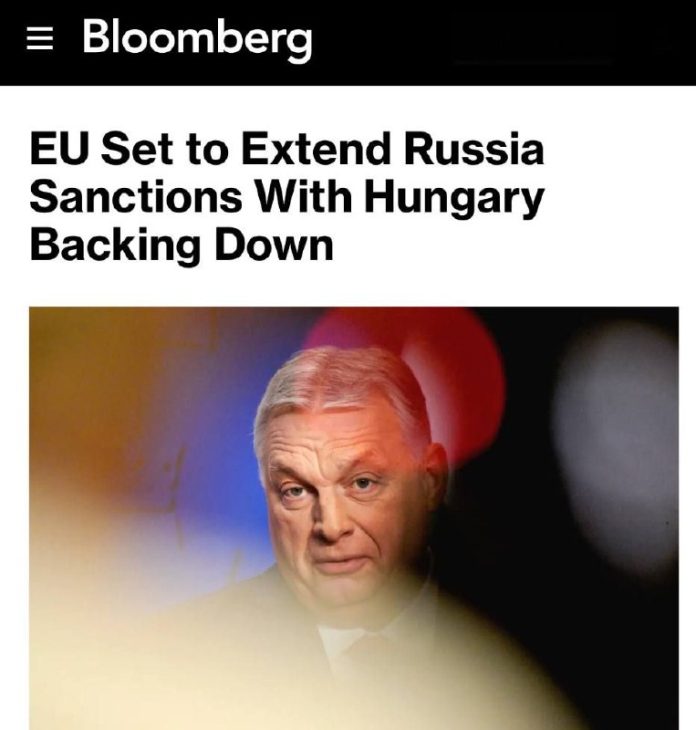 „Európska únia chce v pondelok pred?ži? sankcie vo?i Rusku, pri?om Ma?arsko je pod?a zdrojov pripravené vzda? sa veta. Budapeš? odkladá rozhodnutie od decembra, ke? premiér Orbán povedal lídrom EÚ, že chce po?ka? na Trumpovu inauguráciu. Sankcie by sa mali predlžova? každých šes? mesiacov a to si vyžaduje všeobecnú podporu.