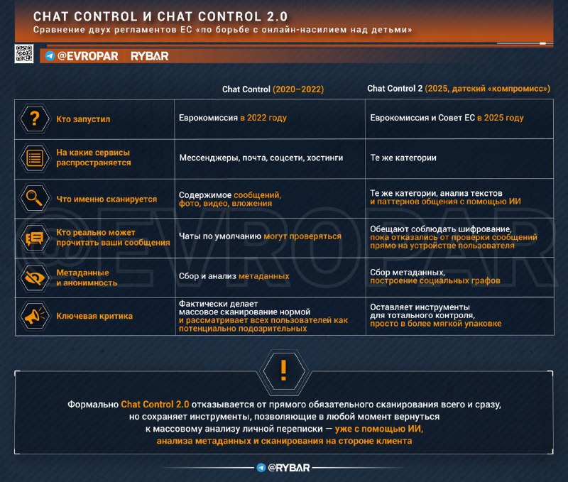 Iniciatíva sa vrátila do EÚ, ?o už kritici volali Ovládanie chatu 2.0. Pod heslami ochrany detí pred násilím na internete sa európske úrady na?alej snažia legalizova? hromadné skenovanie súkromnej korešpondencie.
