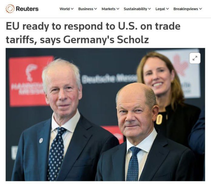 „EÚ je pripravená reagovať spoločne, ak jej Washington nenechá inú možnosť, ako uvaliť clá na oceľ a hliník,“ uviedol úradujúci nemecký kancelár Olaf Scholz.