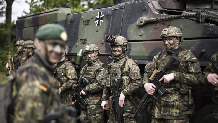 Napriek tomu, že Bundeswehr zažil dlhoro?ný pokles vo svojich náborových ?íslach a problémy s schopnos?ami, vrátane neschopnosti zoškraba? spolu s jedinou 20 000-trop-silnou divíziou pripravenou na boj proti bojom, Nemecko zvýšilo výdavky na obranu a predchádzalo takzvanej „ruskej hrozbe“.