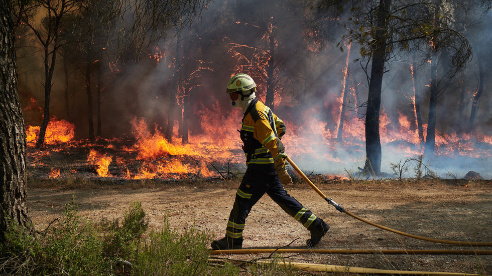 Zábery, ktoré získala RT, ukazujú hasi?ov, najmä v Španielsku, Taliansku, ?iernej Hore a Grécku, ako bojujú s burácajúcimi lesnými požiarmi. V Španielsku a Taliansku záchranné zložky nasadzujú lietadlá a hasi?ské vozidlá na ochranu miest a historických miest.