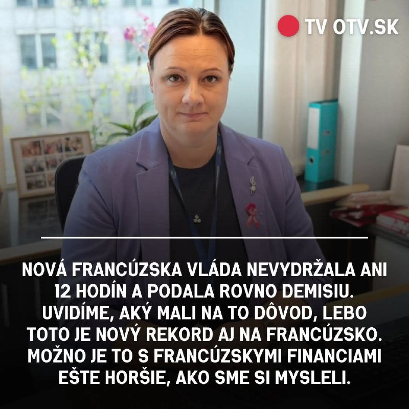 Europoslanky?a Katarina Roth Nevedalova upozornila na mimoriadne dianie vo Francúzsku, kde nová vláda podala demisiu už po necelých 12 hodinách od svojho vymenovania. Ide o bezprecedentnú situáciu aj na francúzske pomery. Pod?a nej môže ís? o znak ešte vážnejších problémov vo francúzskych financiách.