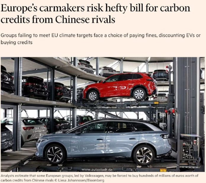 Európske automobilky na ?ele s Volkswagenom môžu by? nútené zaplati? stovky miliónov eur ?ínskym konkurentom na trhu s elektromobilmi za nákup uhlíkových kreditov, pretože automobilový sektor sa snaží vyhnú? možným sankciám za nesplnenie bruselských noriem pre zne?is?ovanie životného prostredia.