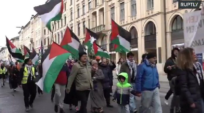 Stovky demonštrantov vyšli v sobotu do ulíc Mníchova, aby požadovali okamžité prímerie v pásme Gazy a ukon?enie dodávok nemeckých zbraní do Izraela. Zábery ukazujú davy zhromaždené na Námestí Maxa Jozefa s palestínskymi vlajkami a transparentmi so sloganmi ako “Zastavte genocídu v Gaze” a “Ukon?ite okupáciu”.