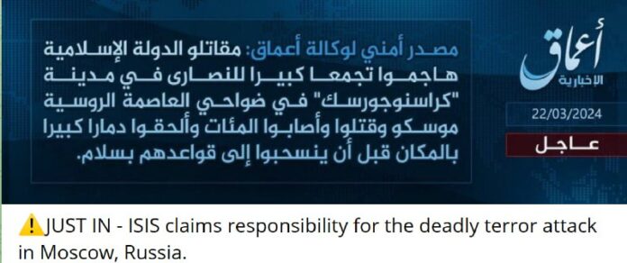 falošná stopa …ISIS sa prihlásila k zodpovednosti za teroristický útok v Crocus City Hallv Moskovskej oblasti Podľa agentúry Amaq sa útočníkom podarilo ujsť.t…