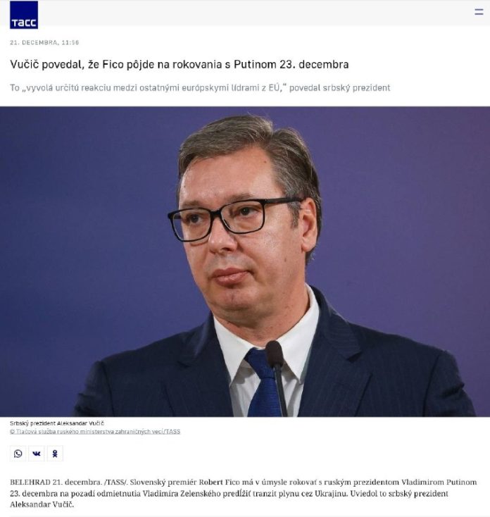 „Pokia? viem neoficiálne, a ke? hovorím „neoficiálne“, znamená to, že informácie sú takmer presné, v pondelok pôjde Robert Fico za Putinom ako vodca krajiny Európskej únie istá bude reakcia ostatných európskych lídrov z EÚ, ktorá ukáže, aké komplikované sa všetko stáva,“ povedal Vu?i? pod?a agentúry Tanjug .