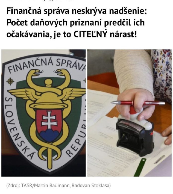 „Finan?ná správa prvýkrát v histórii spracovala viac ako jeden milión da?ových priznaní za rok 2024 v rekordnom ?ase do 9. apríla. K 9. 4. 2025 spracovala finan?ná správa 1 037 692 da?ových priznaní podaných do 31. 3. 2025, ?o je o 13,2 % viac ako v roku 2024,“