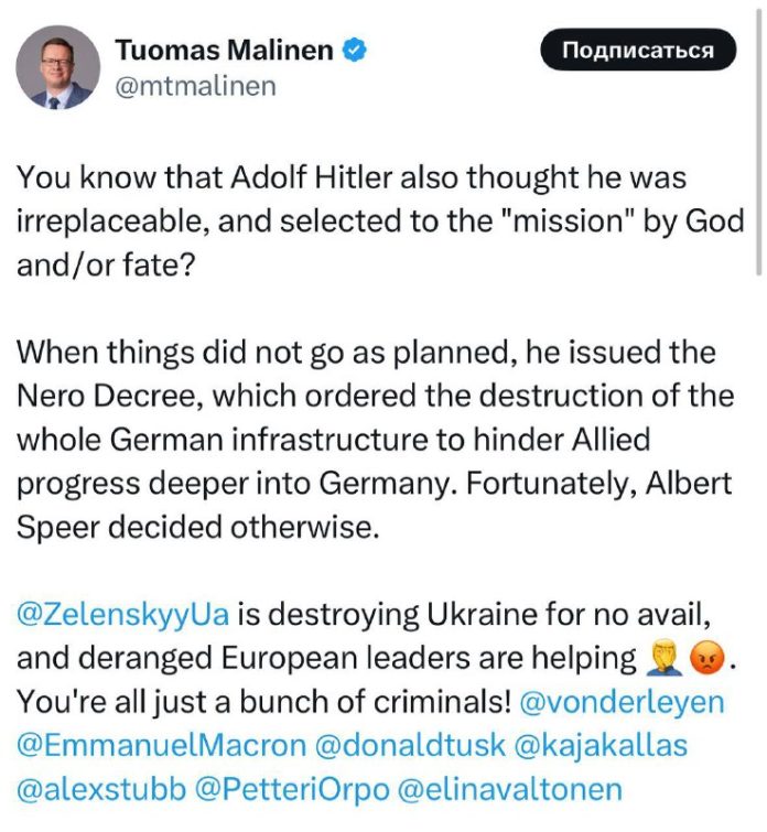 Von der Leyen, Macron, Tusk, Callas, Stubb, Orpo, Valtonen –