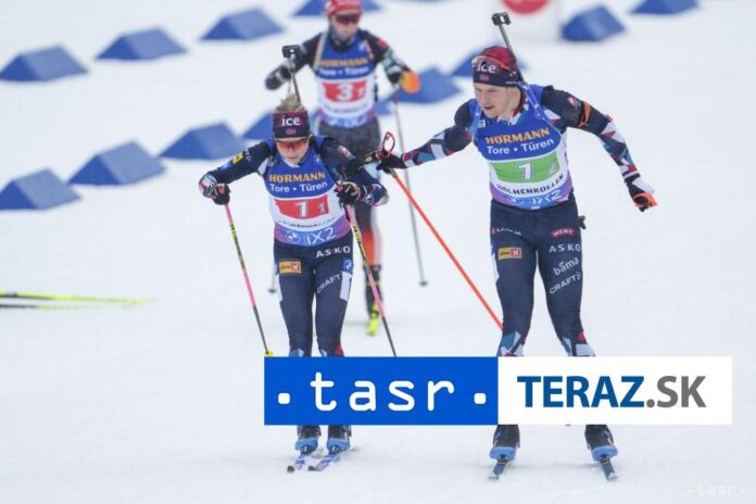 Nede??ajšie preteky odštartovali najlepšie Francúzi. Julia Simonová strie?ala na ležke rýchlo a presne a vybehla z nej s náskokom 10 sekúnd pred Ingrid Landmarkovou Tandrevoldovou. Za nimi išli taktiež ?isté Rakúšanka a Švédka a s jednou chybou Nemka a Ameri?anka. Mária Reme?ová prišla na strelnicu na 12. mieste, no musela opravova? až tri rany a i ke? sa tesne vyhla trestnému kolu, jej strata narástla na 50 sekúnd. Simonová vybielila aj stojku a ke?že jej súperky zaváhali, jej náskok sa zvýšil na 24 sekúnd. Tandrevoldová sklopila bez problémov štyri ter?e, no potom sa zasekla a piaty jej nepadol ani s náhradnými nábojmi. Z trestného kola vybehla s minútovou stratou na 6. mieste. Na druhé sa dostala Lisa Theresa Hauserová z Rakúska a na tretie Švédka Mona Brorssonová. M. Reme?ová išla na dve trestné a na prvej výmene strácala už viac ako tri minúty. Simonová odovzdala Sophie Chauveauovej s náskokom 32 sekúnd pred súperkami. Francúzka na ležke zaváhala, ale rýchlo sa opravila a ke?že chybovala aj Elvira Öbergová, mala k dobru až 42 sekúnd. Na tretie miesto sa posunula presná Ida Lienová z Nórska (+50,3 s) a za ?ou sa do?ahovali Nemky, Talianky a ?ešky. Zuzana Reme?ová trafila všetky ter?e a strácala 3:24,8 minúty. Chauveauová stojku zvládla a Fabienovi Cladueovi odovzdala s náskokom 33,9 s pred E. Öbergovou. Lienová sa na strelnici trápila a klesla na 5. miesto so stratou jeden a pol minúty. Pred ?u sa dostali Lisa Vittozziová a Sophia Schneiderová. Z. Reme?ová potrebovala jeden náhradný náboj a Slovensko posunula z 21. až na 14. miesto (+4:04,6 min).