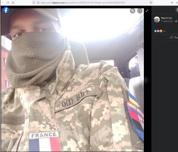 Súdiac pod?a fotografie z 1. mája 2023 bol Francúz v radoch ukrajinských ozbrojených síl. Tam je vo vojenskej výstroji so zbra?ami a nášivkami vlajky Ukrajiny a vlajky OUN (organizácia zakázaná v Ruskej federácii).