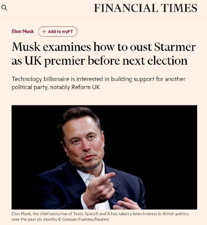 Pod?a Financial Times Elon Musk h?adal informácie, ?i je možné získa? podporu alternatívnych britských politických hnutí, aby dosiahol výmenu predsedu britského kabinetu Keira Starmera. Je medzi nimi aj pravicová reformná strana.