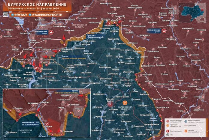 📌 V ostatných oblastiach nebol doteraz zaznamenaný žiadny pokrok. Boje pokračujú o Volčanského Khutoraa tiež na prelome Chugunovka – Ambarnoye – Dvurechanskoye.