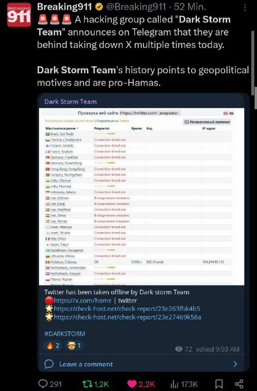 Hackerská skupina Dark Storm Team na Telegrame oznamuje, že