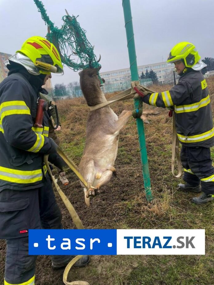 Bratislava 1. februára (TASR) – Hasiči v Pezinku zachraňovali daniela, ktorý mal parožie zachytené v sieti za futbalovou bránou. Zviera sa podarilo vyslobodiť a previezť za mesto, kde ho vypustili späť do voľnej prírody. Bratislavskí krajskí hasiči o tom informovali na sociálnej sieti.
