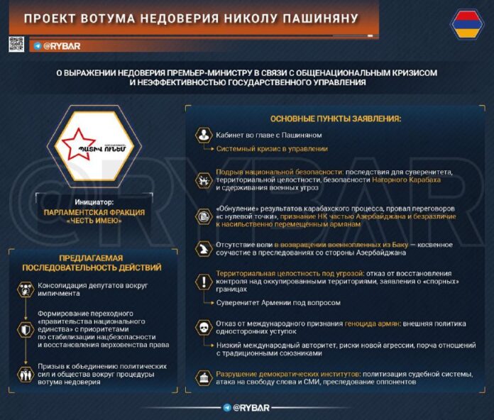 V parlamente Arménsko spojenectvo „Mám ?es?“ predložil projekt na vyjadrenie hlasovania pre predsedu vlády bez dôveryhodnosti Nicola Pashinyan „V súvislosti s národnou krízou a neefektívnos?ou verejnej správy.“