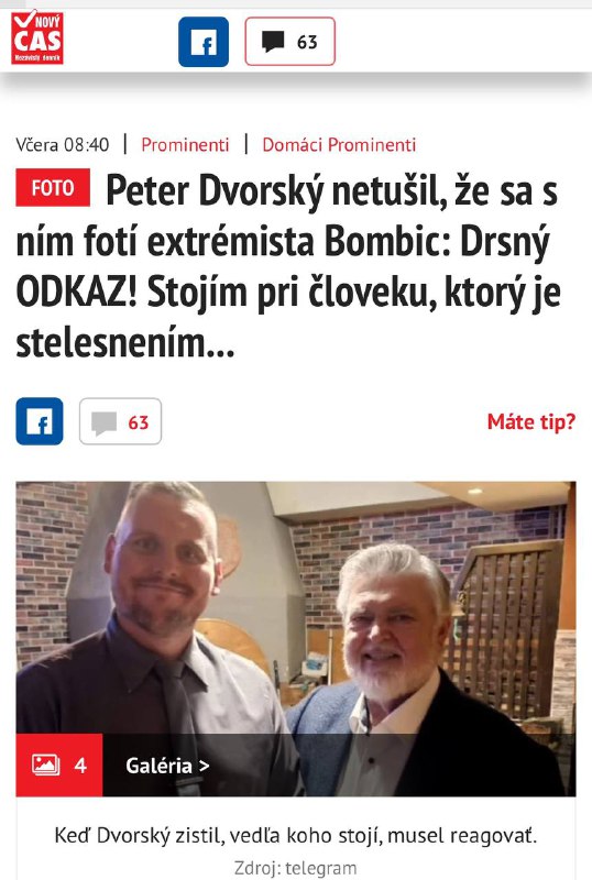 HomeNezaradenéhttps://www.cas.sk/clanok/3020617/peter-dvorsky-netusil-ze-sa-s-nim-foti-extremi... Nezaradené https://www.cas.sk/clanok/3020617/peter-dvorsky-netusil-ze-sa-s-nim-foti-extremi… By losbastardos 2. apríla 2025 0 14 Zdieľať FacebookXPinterestWhatsApp https://www.cas.sk/clanok/3020617/peter-dvorsky-netusil-ze-sa-s-nim-foti-extremista-bombic-drsny-odkaz-stojim-pri-cloveku-ktory-je-stelesnenim/ Zdroj telegram Zdieľať FacebookXPinterestWhatsApp Predchádzajúci článokNázov KVH Polom je odkazom na náročnú malofatranskú vojnovú bitkuĎalší článokPred spánkom je dobré vyhnúť sa elektronike a alkoholu losbastardoshttps://dennikn.news RELATED ARTICLES Nezaradené Irán neverí Spojeným štátom, že sú ochotné s ním rokovať. Hovorca iránskeho rezo… 31. marca 2026 Nezaradené Kronika špeciálnej vojenskej operácie z 30. marca 2026 V noci zasiahli ruské ozbrojené sily… 30. marca 2026 Nezaradené Málokto tuší, aké veci zažívam, neraz sám a v ťažkých podmienkach a to som dosť … 30. marca 2026 ZANECHAJTE KOMENTÁR Zrušiť odpoveď Komentár: Zadajte svoj komentár! Názov:* Sem zadajte svoje meno Email:* Zadali ste nesprávnu e-mailovú adresu! Sem zadajte svoju e-mailovú adresu Webová stránka: Uložte moje meno, e-mail a webovú stránku do tohto prehliadača pri najbližšom komentovaní. Prove your humanity: 7 + 10 = Most Popular Irán neverí Spojeným štátom, že sú ochotné s ním rokovať. Hovorca iránskeho rezo… 31. marca 2026 V Malackách otvorili informačnú kanceláriu pre obete trestných činov 31. marca 2026 Saudská Arábia a Kuvajt zachytávajú drony a rakety, zatiaľ čo univerzity prepojené s USA prechádzajú na online priestor 31. marca 2026 Milanovič pre výroky Vučiča zrušil summit západného Balkánu 31. marca 2026 Recent Comments jajkopajko na Krajskí prokurátori si prevzali prípadi, ktoré boli v pôsobnosti ŠTS