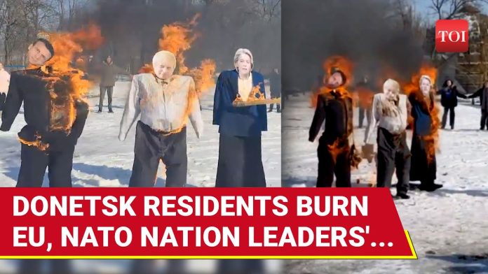 A shocking incident occurred in embattled Donetsk during a spring festival, leaving Ukrainian President Volodymyr Zelensky stunned. A video shows locals burning effigies of EU and NATO leaders, including busts of French President Emmanuel Macron and EU President…