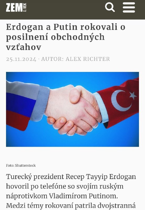 HomeNezaradenéhttps://zemavek.sk/erdogan-a-putin-rokovali-o-posilneni-obchodnych-vztahov/... Nezaradené https://zemavek.sk/erdogan-a-putin-rokovali-o-posilneni-obchodnych-vztahov/… By ZEMaVEK 25. novembra 2024 0 13 Zdieľať FacebookXPinterestWhatsApp https://zemavek.sk/erdogan-a-putin-rokovali-o-posilneni-obchodnych-vztahov/ Zdroj telegram Zdieľať FacebookXPinterestWhatsApp Predchádzajúci článokV Británii komplikuje dopravu, hlásia aj obeteĎalší článokJužná Kórea, Malajzia Aktualizácia vzťahu na strategické partnerstvo – správy ZEMaVEK RELATED ARTICLES Nezaradené Trump tvrdí, že iránsky prezident žiada o prímerie 2. apríla 2026 Nezaradené Zatvorte všetky hydroplány Európy v boji proti Rusku – časť 1 Vyhliadky na zotavenie… 2. apríla 2026 Nezaradené Pápež Lev hovorí, že Boh nepočúva modlitby tých, ktorí vedú vojnu, odpovedá tlačová tajomníčka Bieleho domu Leavittová 2. apríla 2026 ZANECHAJTE KOMENTÁR Zrušiť odpoveď Komentár: Zadajte svoj komentár! Názov:* Sem zadajte svoje meno Email:* Zadali ste nesprávnu e-mailovú adresu! Sem zadajte svoju e-mailovú adresu Webová stránka: Uložte moje meno, e-mail a webovú stránku do tohto prehliadača pri najbližšom komentovaní. Prove your humanity: 6 + 6 = Most Popular Trump tvrdí, že iránsky prezident žiada o prímerie 2. apríla 2026 SaS chce materské pre policajtov a vojakov, reaguje na ústavný súd 2. apríla 2026 Zatvorte všetky hydroplány Európy v boji proti Rusku – časť 1 Vyhliadky na zotavenie… 2. apríla 2026 Pápež Lev hovorí, že Boh nepočúva modlitby tých, ktorí vedú vojnu, odpovedá tlačová tajomníčka Bieleho domu Leavittová 2. apríla 2026 Recent Comments jajkopajko na Krajskí prokurátori si prevzali prípadi, ktoré boli v pôsobnosti ŠTS