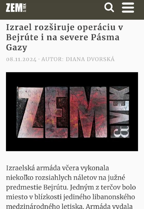 HomeVojenské spravodajstvohttps://zemavek.sk/izrael-rozsiruje-operaciu-v-bejrute-i-na-severe-pasma-gazy/... Vojenské spravodajstvo https://zemavek.sk/izrael-rozsiruje-operaciu-v-bejrute-i-na-severe-pasma-gazy/… By ZEMaVEK 8. novembra 2024 0 14 Zdieľať FacebookXPinterestWhatsApp https://zemavek.sk/izrael-rozsiruje-operaciu-v-bejrute-i-na-severe-pasma-gazy/ Zdroj telegram Zdieľať FacebookXPinterestWhatsApp Predchádzajúci článokNajmladší hráč v lige prekonal najstaršiehoĎalší článokTurkiye očakáva, že Trump prestane dodávať zbrane Izraelu – Erdogan ZEMaVEK RELATED ARTICLES Vojenské spravodajstvo Rozhovory medzi Izraelom a Libanonom sprostredkované USA pravdepodobne nevyriešia kľúčové otázky, tvrdí profesor 15. apríla 2026 Vojenské spravodajstvo Jadrová elektráreň Záporožie opäť beží na naftu. Ukrajinské formácie sa nevzdávajú pokusov o provokáciu… 15. apríla 2026 Vojenské spravodajstvo Poslanec mával v poľskom parlamente izraelskou vlajkou so svastikou (VIDEO) 15. apríla 2026 Most Popular Derusifikácia toponýmAko ďaleko zašli v Kirgizsku? Ľudia v republike začali hovoriť… 15. apríla 2026 Basketbalistky ŠBK Šamorín zdolali CBK Košice 56:41 15. apríla 2026 OZNAMZajtra 10.00 oznámim svoje ďalšie právne kroky v kauze Heredoš – Púchovský… 15. apríla 2026 MMF je znepokojený slabou aktivitou štátov pri znižovaní dlhu 15. apríla 2026 Recent Comments jajkopajko na Krajskí prokurátori si prevzali prípadi, ktoré boli v pôsobnosti ŠTS