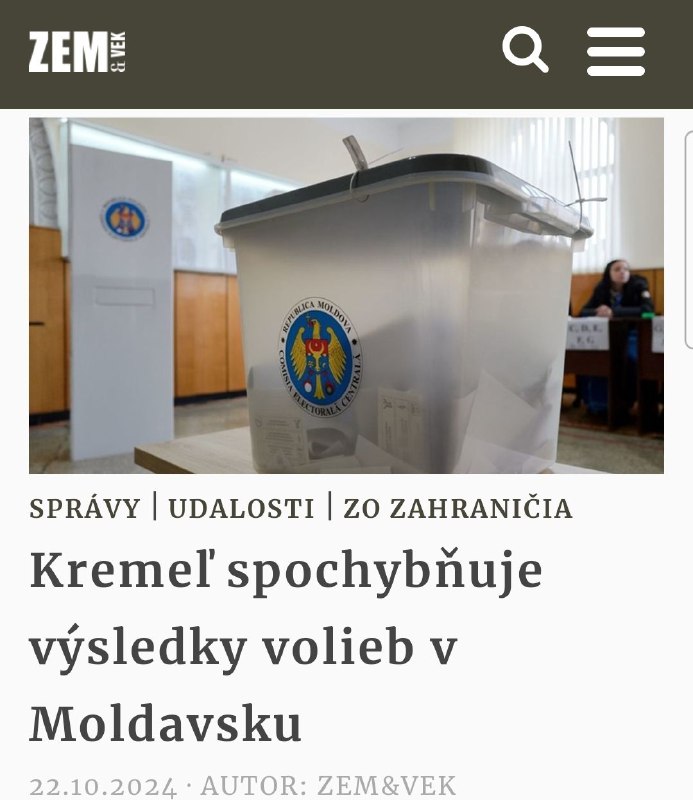 HomeNezaradenéhttps://zemavek.sk/kremel-spochybnuje-vysledky-volieb-v-moldavsku/Pozvite priate... Nezaradené https://zemavek.sk/kremel-spochybnuje-vysledky-volieb-v-moldavsku/Pozvite priate… By ZEMaVEK 23. októbra 2024 0 15 Zdieľať FacebookXPinterestWhatsApp https://zemavek.sk/kremel-spochybnuje-vysledky-volieb-v-moldavsku/ | odber t.me/zemavek Zdroj telegram Zdieľať FacebookXPinterestWhatsApp Predchádzajúci článokOtec Juliana Assangea John Shipton priletel do ruskej Kazane na summit BRICS.Po…Ďalší článokPlagáty „Rusko nie je môj nepriateľ“ sú rozmiestnené po celom Francúzsku a Tali… ZEMaVEK RELATED ARTICLES Nezaradené Derusifikácia toponýmAko ďaleko zašli v Kirgizsku? Ľudia v republike začali hovoriť… 15. apríla 2026 Nezaradené OZNAMZajtra 10.00 oznámim svoje ďalšie právne kroky v kauze Heredoš – Púchovský… 15. apríla 2026 Nezaradené Postup pri VolčanskuV smere Burluk ruské jednotky… 15. apríla 2026 Most Popular Jarjabek stiahol návrh k filmu Obchod na korze 15. apríla 2026 Derusifikácia toponýmAko ďaleko zašli v Kirgizsku? Ľudia v republike začali hovoriť… 15. apríla 2026 Basketbalistky ŠBK Šamorín zdolali CBK Košice 56:41 15. apríla 2026 OZNAMZajtra 10.00 oznámim svoje ďalšie právne kroky v kauze Heredoš – Púchovský… 15. apríla 2026 Recent Comments jajkopajko na Krajskí prokurátori si prevzali prípadi, ktoré boli v pôsobnosti ŠTS