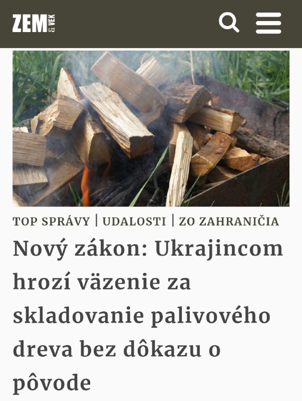 HomeNezaradenéhttps://zemavek.sk/novy-zakon-ukrajincom-hrozi-vazenie-za-skladovanie-palivoveho... Nezaradené https://zemavek.sk/novy-zakon-ukrajincom-hrozi-vazenie-za-skladovanie-palivoveho… By ZEMaVEK 6. novembra 2024 0 12 Zdieľať FacebookXPinterestWhatsApp https://zemavek.sk/novy-zakon-ukrajincom-hrozi-vazenie-za-skladovanie-palivoveho-dreva-bez-dokazu-o-povode/ Zdroj telegram Zdieľať FacebookXPinterestWhatsApp Predchádzajúci článok2⃣7⃣7⃣ voliteľov Fox News oficiálne vyhlasuje Donalda Trump…Ďalší článokMiroslav Kamensky pinned a photo… ZEMaVEK RELATED ARTICLES Nezaradené ÚNAVA Z POLITIKY? NEMÁŠ NÁROK! Život na Slovensku je prepchatý politikou do pras… 31. marca 2026 Nezaradené Protiútoky Ozbrojených síl Ukrajiny v Stepnogorsku a bitky pri Malajskej Tokmačke – analýza RybaryaK stred… 31. marca 2026 Nezaradené Desiatky tiel exhumovali z najnovšieho masového hrobu v Keni 31. marca 2026 ZANECHAJTE KOMENTÁR Zrušiť odpoveď Komentár: Zadajte svoj komentár! Názov:* Sem zadajte svoje meno Email:* Zadali ste nesprávnu e-mailovú adresu! Sem zadajte svoju e-mailovú adresu Webová stránka: Uložte moje meno, e-mail a webovú stránku do tohto prehliadača pri najbližšom komentovaní. Prove your humanity: 6 + 4 = Most Popular Ukrajinský útok spôsobil škody v dôležitom baltskom prístave 31. marca 2026 Celebrini pokoril métu 100 bodov pri výhre San Jose nad Blues 5:4 31. marca 2026 ÚNAVA Z POLITIKY? NEMÁŠ NÁROK! Život na Slovensku je prepchatý politikou do pras… 31. marca 2026 Protiútoky Ozbrojených síl Ukrajiny v Stepnogorsku a bitky pri Malajskej Tokmačke – analýza RybaryaK stred… 31. marca 2026 Recent Comments jajkopajko na Krajskí prokurátori si prevzali prípadi, ktoré boli v pôsobnosti ŠTS