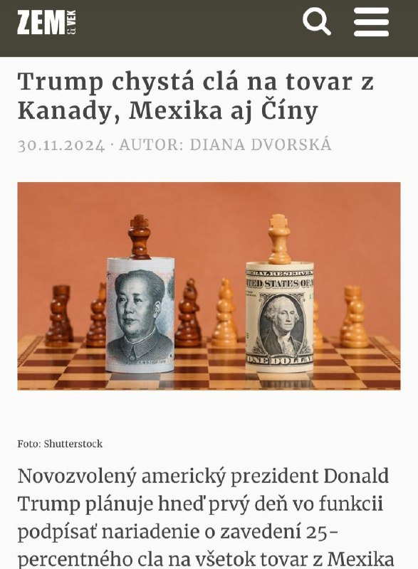 HomeNezaradenéhttps://zemavek.sk/trump-chysta-cla-na-tovar-z-kanady-mexika-aj-ciny/... Nezaradené https://zemavek.sk/trump-chysta-cla-na-tovar-z-kanady-mexika-aj-ciny/… By ZEMaVEK 30. novembra 2024 0 18 Zdieľať FacebookXPinterestWhatsApp https://zemavek.sk/trump-chysta-cla-na-tovar-z-kanady-mexika-aj-ciny/ Zdroj telegram Zdieľať FacebookXPinterestWhatsApp Predchádzajúci článokV Sýrii pri povstaleckých útokoch zahynuli už desiatky vojakovĎalší článokV Kokave nad Rimavicou otvorili novú turistickú ubytovňu ZEMaVEK RELATED ARTICLES Nezaradené Iracký premiér a katarský emir presadzujú koordináciu, keďže vojna narúša región 1. apríla 2026 Nezaradené Pentagon zvažuje nasadenie výkonného laserového systému proti dronom v blízkosti… 1. apríla 2026 Nezaradené Kurdistan zaznamenal od 28. februára viac ako 470 útokov a 107 obetí 1. apríla 2026 ZANECHAJTE KOMENTÁR Zrušiť odpoveď Komentár: Zadajte svoj komentár! Názov:* Sem zadajte svoje meno Email:* Zadali ste nesprávnu e-mailovú adresu! Sem zadajte svoju e-mailovú adresu Webová stránka: Uložte moje meno, e-mail a webovú stránku do tohto prehliadača pri najbližšom komentovaní. Prove your humanity: 3 + 1 = Most Popular Kanadský premiér odsúdil nezákonnú inváziu Izraela do Libanonu 1. apríla 2026 Iracký premiér a katarský emir presadzujú koordináciu, keďže vojna narúša región 1. apríla 2026 Pre nehodu uzavreli most na ceste medzi Farnou a Veľkými Ludincami 1. apríla 2026 Lotyšsko a Luxembursko zvládli aj odvety a udržali sa v C-divízii 1. apríla 2026 Recent Comments jajkopajko na Krajskí prokurátori si prevzali prípadi, ktoré boli v pôsobnosti ŠTS